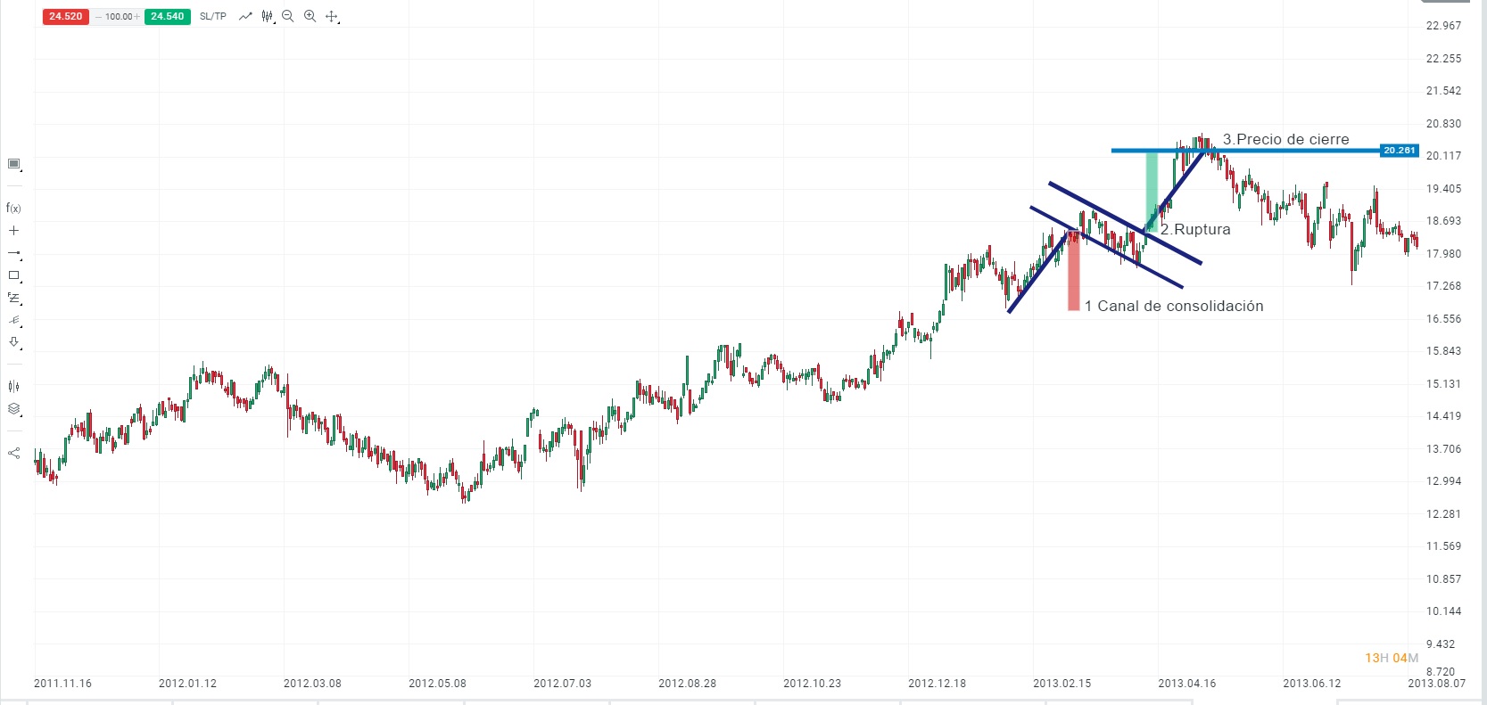 Rectángulos: Formación lateral cuya rotura a favor de tendencia principal avisa de una continuación de la misma.