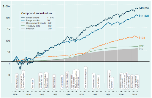 Según el estudio de Ibboston con datos de Morningstar, la rentabilidad media de los índices de pequeñas compañías en Estados Unidos alcanza el 11.8% anual desde 1926, mientras que el de grandes compañías supera ligeramente el 10%. Por su parte, los bonos de más largo plazo han logrado generar un 5.2% al año mientras que las letras del tesoro apenas superan la inflación, situándose en el 3.2%.