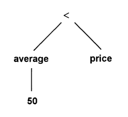 Figura 2. Representación de regla de trading como estructura de Árbol. Si el precio (price) de la última barra es mayor que la media (average) de las últimas 50 entonces "entra en mercado"