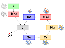Figura 1. Algoritmo genético i: inicialización, f(X): evaluación, ?: condición de término, Se: selección, Cr: cruzamiento, Mu: mutación, Re: reemplazo, X*: mejor solución.