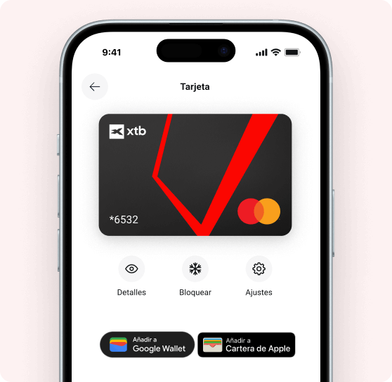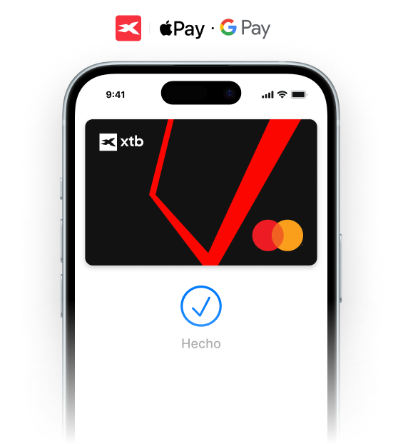 Realiza tus compras diarias de manera fácil y con acceso instantáneo a tu dinero en XTB - solo tienes que añadir tu tarjeta a Apple Pay o Google Pay y empezar a pagar con tu smartphone o smartwatch