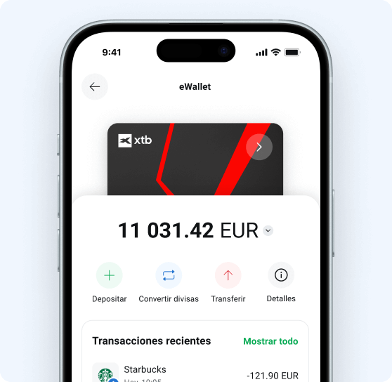 En XTB tienes una amplia variedad de oportunidades de inversión. Y con tu eWallet y la tarjeta virtual multidivisa, tu dinero siempre a mano