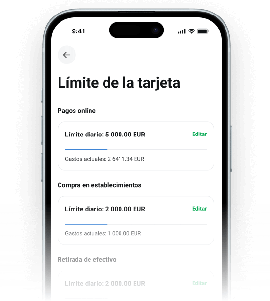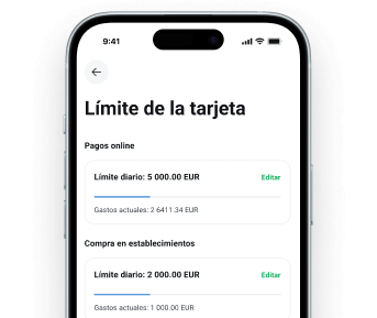 Establece límites de gasto, transferencias, retiradas y pagos por tarjeta de manera fácil y sencilla.