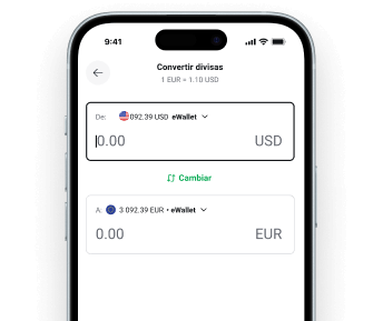 Cambia divisas en cuanto lo necesites. Límite de transacciones diarias, se aplica tasa de conversión de divisas. Puedes saber más al leer el anexo de tarifas.
