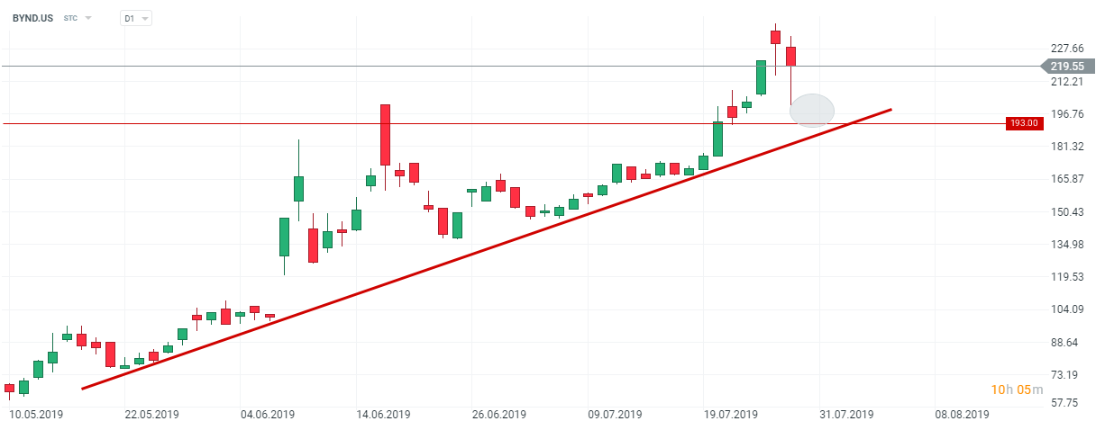 Les cours de l’action Beyond Meat sont attendus en net repli. En premarket le titre s’échange autour des 193/194 $. Source : Xstation5.