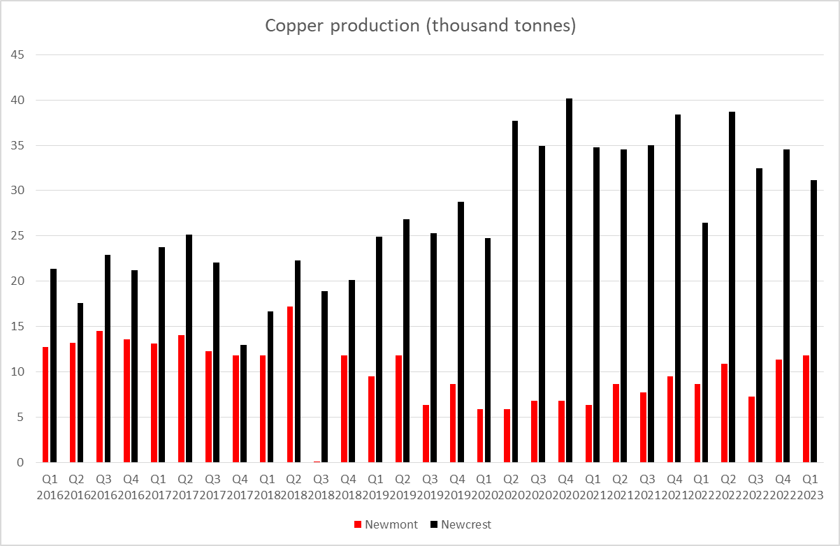 - Augmentation significative de la production de cuivre de Newmont