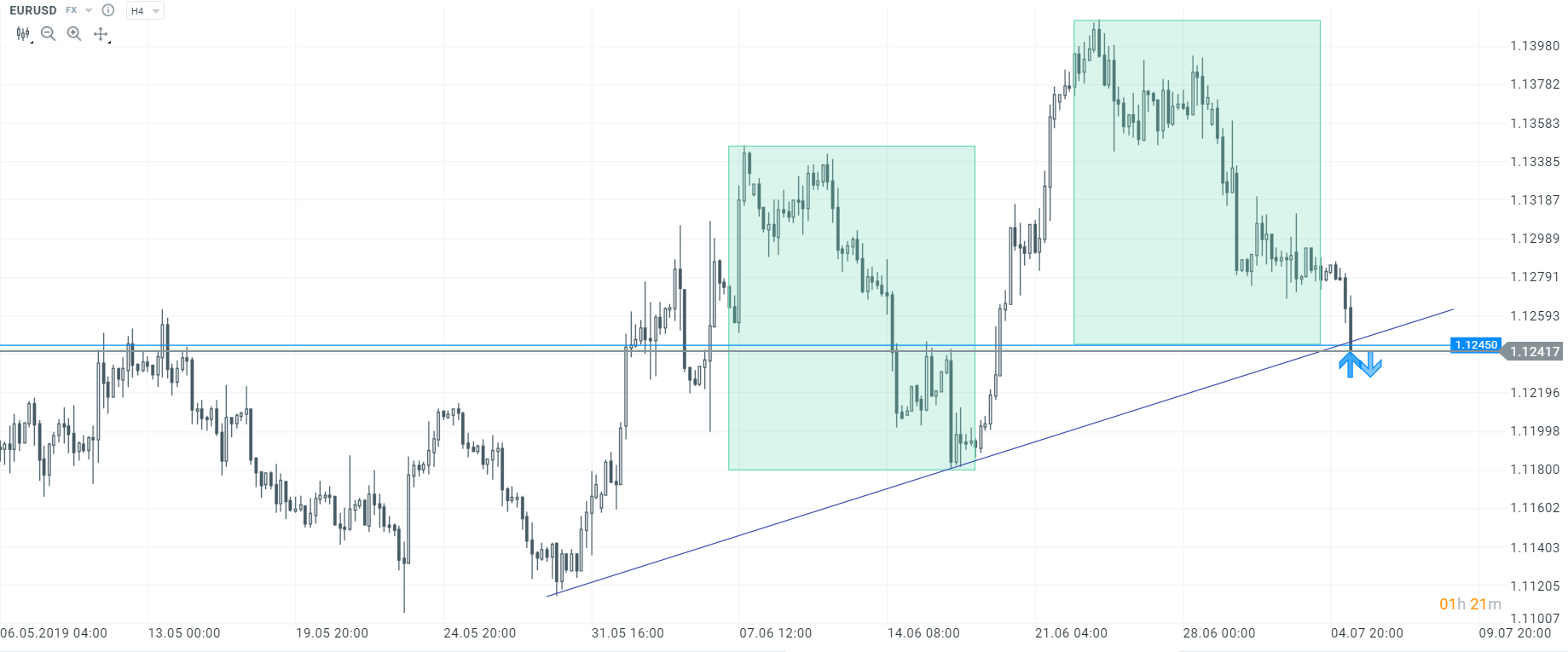 Le rapport NFP change la donne. Nous pouvons observer des baisses de l’EURUSD. Le cours se sont affranchi d’une zone de support clé. La prochaine zone de support constitue un point clé. Si celle-ci résiste, on peut s’attendre à un rebond technique. Sinon, casser le niveau ouvrira la voie à une plus forte chute.