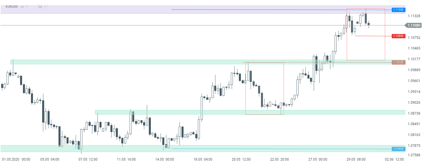 L'EURUSD a ouvert la séance d'aujourd'hui en hausse. Cependant, la tendance haussière a été stoppée dans la zone de résistance clé (1,1150). En H4, la formation potentielle en double sommet se profile. Si les vendeurs parviennent à passer sous le 1.1080, considérée comme une ligne de cou de la structure en double sommet, une correction à la baisse pourrait commencer. Dans un tel scénario, le prochain support à surveiller se trouve à 1.1010. Il faut savoir que le marché pourrait devenir plus volatil une fois que les principales données américaines (rapport ISM) seront publiées à 16h00.