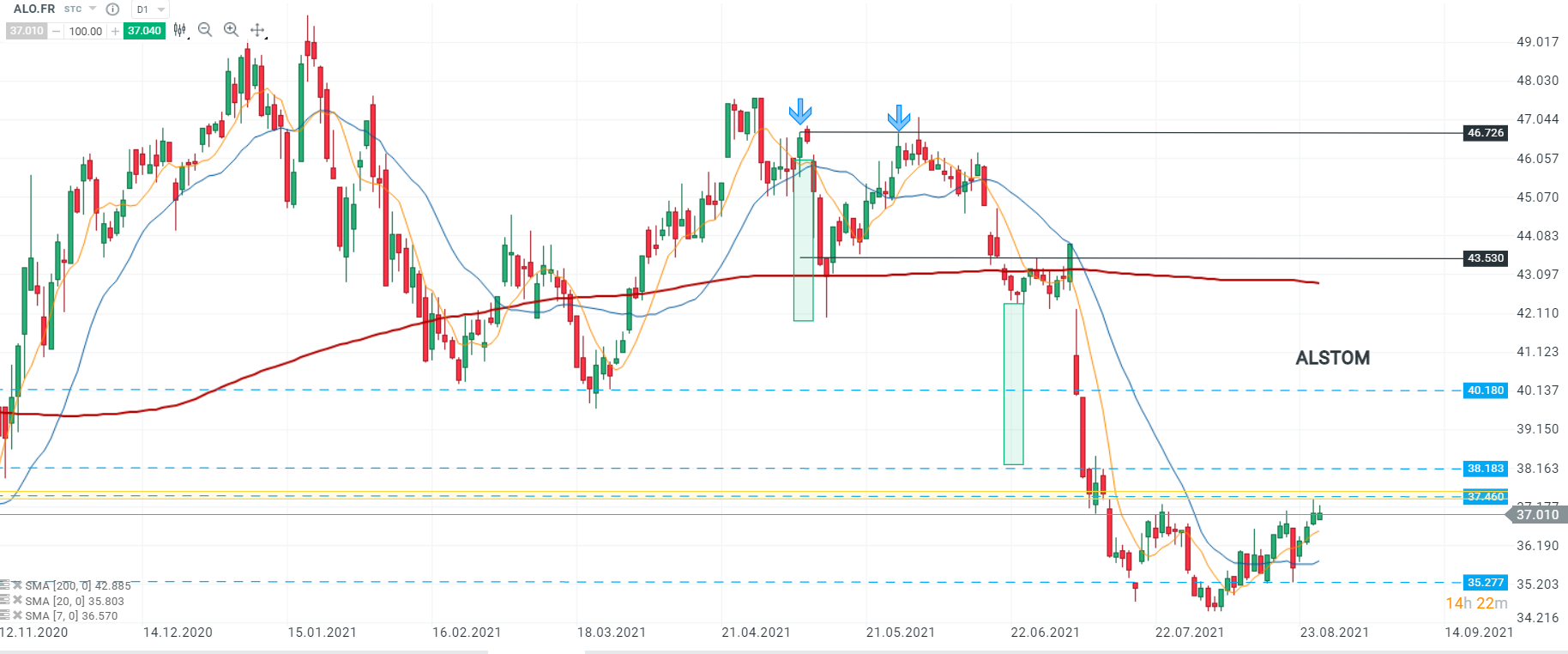 Par ailleurs, le conglomérat de Bouygues a relevé ce jour ses objectifs financiers pour l’exercice 2021 et a fait état de résultats supérieurs aux attentes. Pour rappel, Bouygues détient une participation de 0,16% dans le capital d’Alstom. Le bénéfice net du conglomérat a été estimé à 408 millions. La contribution d’Alstom dans ces résultats a été de 219 millions alors que sur la même période de 2020, sa contribution n’était que de 35 millions d’euros.