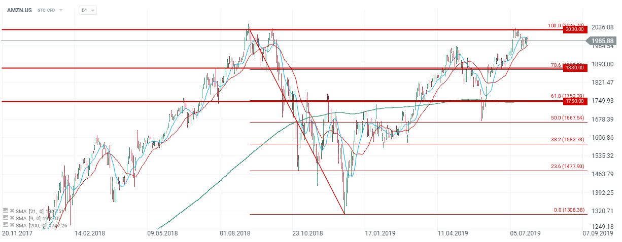 Les cours de l’action Amazon ne sont pas parvenus à s'affranchir de leur résistance sur la zone des 2030 $. Source: Xstation5