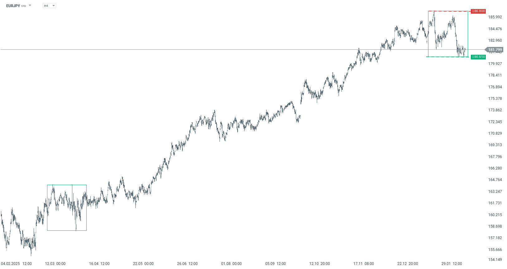 Les cotations EURJPY sont en tendance haussière depuis le début de l'année dernière. Cependant, la correction baissière actuelle est plus importante et a atteint une amplitude comparable à la plus grande correction précédente de la tendance, ce qui permet de la considérer comme un modèle clé 1:1 selon la méthodologie Overbalance. Actuellement, le niveau de résistance significatif se situe autour de 180,85, où se trouve la limite supérieure de la géométrie baissière locale. Selon la méthodologie Overbalance, tant que le prix reste en dessous de ce niveau, la correction pourrait se poursuivre. D'autre part, un dépassement durable de 180,85 pourrait signaler un retour à la tendance haussière principale et ouvrir la voie à une nouvelle tentative d'atteindre les récents sommets.