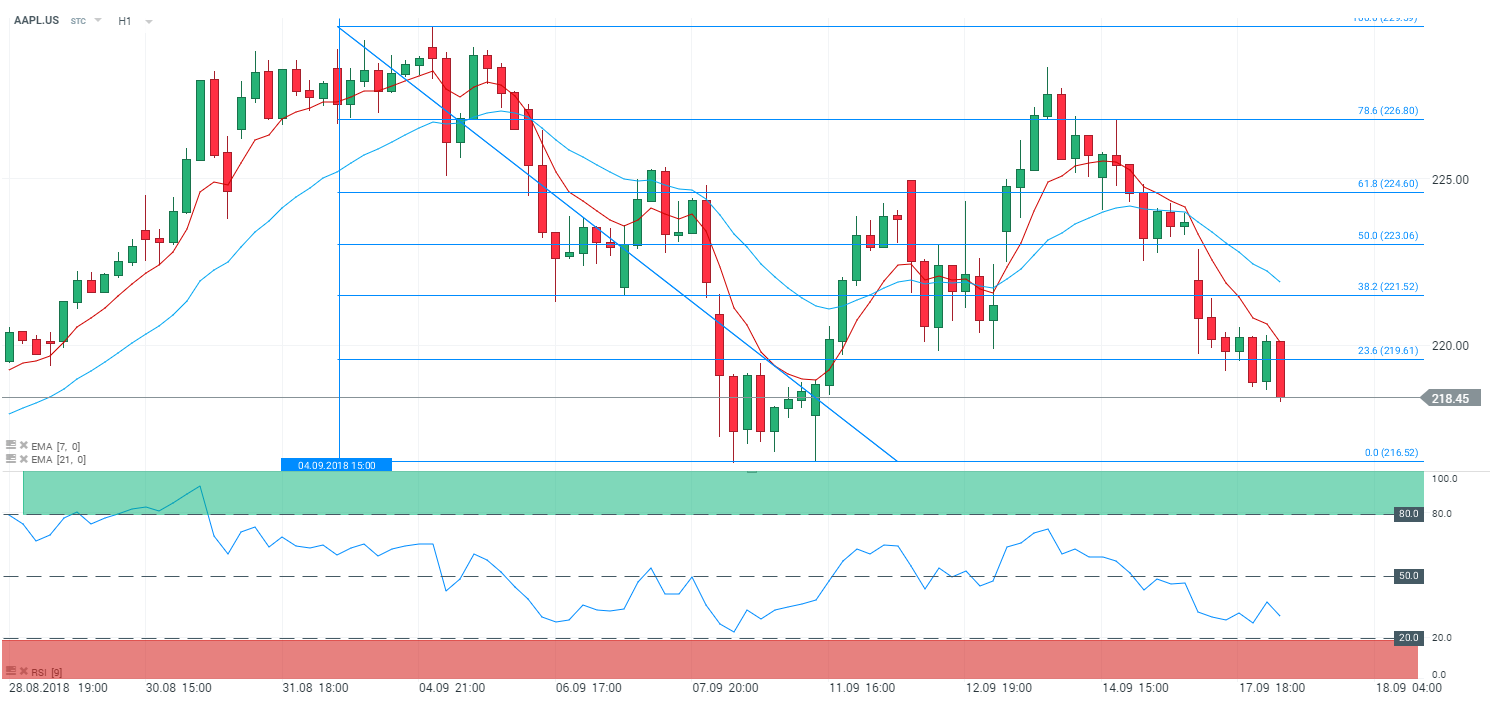 Hier Apple a décroché de 2,66% à 217,88 $ suite à la confirmation de la taxation de 200 milliards de de dollars de produits d’importation chinois.