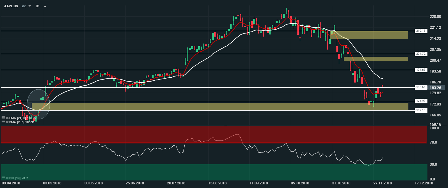 Représentation du titre Apple (AAPL.US), en unité de temps journalière (D1)
