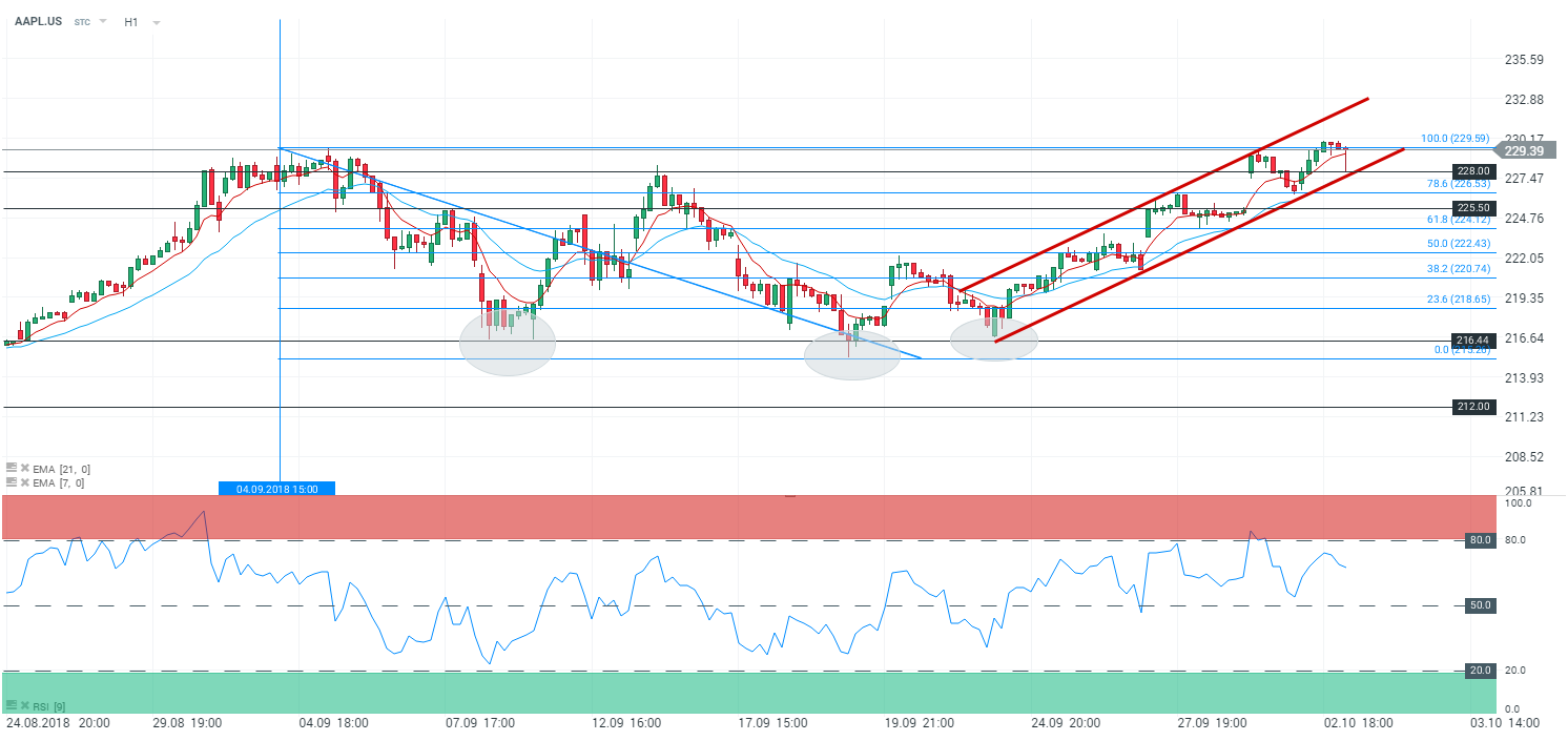 Représentation du titre Apple (AAPL.US), en unité de temps horaire (H1)