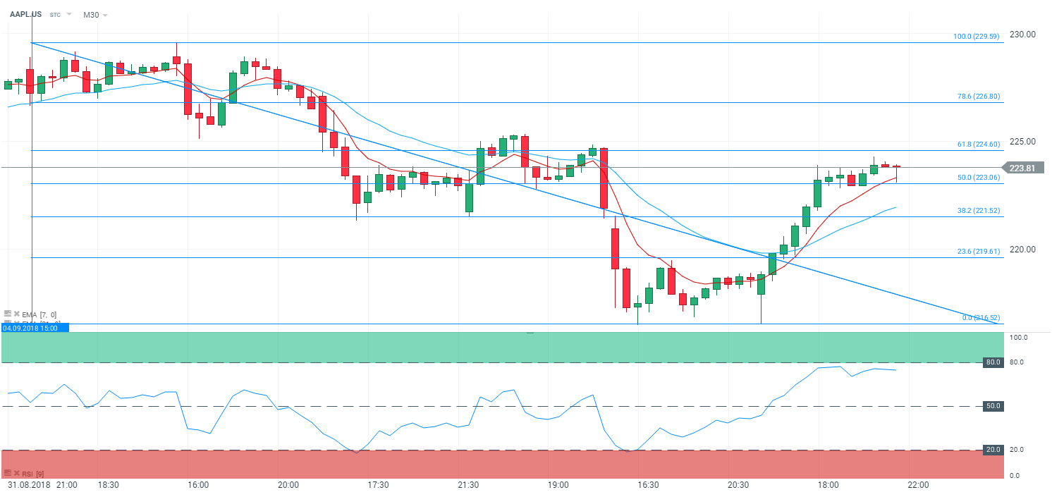 Représentation graphique de l’action Apple (AAPL) en 30 minutes (M30)