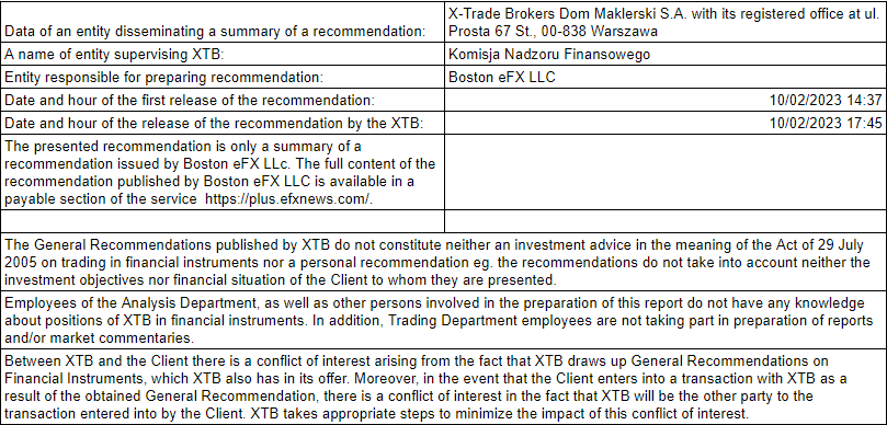 "Ce contenu est une communication marketing au sens de l'art. 24, paragraphe 3, de la directive 2014/65 /UE du Parlement européen et du Conseil du 15 mai 2014 concernant les marchés d'instruments financiers et modifiant la directive 2002/92 /CE et la directive 2011/61 /UE (MiFID II). La communication marketing n'est pas une recommandation d'investissement ou une information recommandant ou suggérant une stratégie d'investissement au sens du règlement (UE) n°596/2014 du Parlement européen et du Conseil du 16 avril 2014 sur les abus de marché (règlement sur les abus de marché) et abrogeant la directive 2003/6 / CE du Parlement européen et du Conseil et directives 2003/124 / CE, 2003/125 / CE et 2004/72 / CE de la Commission et règlement délégué (UE) 2016/958 de la Commission du 9 mars 2016 complétant le règlement (UE) n°596/2014 du Parlement européen et du Conseil en ce qui concerne les normes techniques de réglementation relatives aux modalités techniques de présentation objective de recommandations d'investissement ou d'autres informations recommandant ou suggérant une stratégie d'investissement et pour la divulgation d'intérêts particuliers ou d'indications de conflits d'intérêt ou tout autre conseil, y compris dans le domaine du conseil en investissement, au sens de l'article L321-1 du Code monétaire et financier. L’ensemble des informations, analyses et formations dispensées sont fournies à titre indicatif et ne doivent pas être interprétées comme un conseil, une recommandation, une sollicitation d’investissement ou incitation à acheter ou vendre des produits financiers. XTB ne peut être tenu responsable de l’utilisation qui en est faite et des conséquences qui en résultent, l’investisseur final restant le seul décisionnaire quant à la prise de position sur son compte de trading XTB. Toute utilisation des informations évoquées, et à cet égard toute décision prise relativement à une éventuelle opération d’achat ou de vente de CFD, est sous la responsabilité exclusive de l’investisseur final. Il est strictement interdit de reproduire ou de distribuer tout ou partie de ces informations à des fins commerciales ou privées. Les performances passées ne sont pas nécessairement indicatives des résultats futurs, et toute personne agissant sur la base de ces informations le fait entièrement à ses risques et périls. Les CFD sont des instruments complexes et présentent un risque élevé de perte rapide en capital en raison de l'effet de levier. 71% de comptes d'investisseurs de détail perdent de l'argent lors de la négociation de CFD avec ce fournisseur. Vous devez vous assurer que vous comprenez comment les CFD fonctionnent et que vous pouvez vous permettre de prendre le risque probable de perdre votre argent. Avec le Compte Risque Limité, le risque de pertes est limité au capital investi."