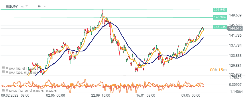 Le yen japonais reste dans une forte tendance à la baisse. La paire de devises USDJPY augmente pour atteindre un niveau de 144,6 points, malgré les déclarations ouvertes des responsables japonais concernant la possibilité d'une intervention sur les devises en cas de dépréciation excessive. La dernière intervention de la Banque du Japon (BoJ) a eu lieu à la fin de l'année dernière lorsque USDJPY est monté à un niveau supérieur à 150 points.