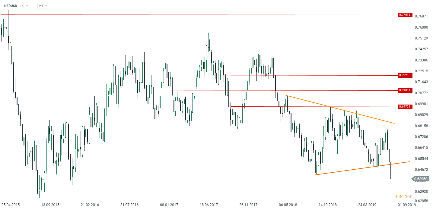 Le NZDUSD a atteint son plus bas niveau depuis janvier 2016 après une baisse inattendue des taux d'intérêt. Source: xStation5