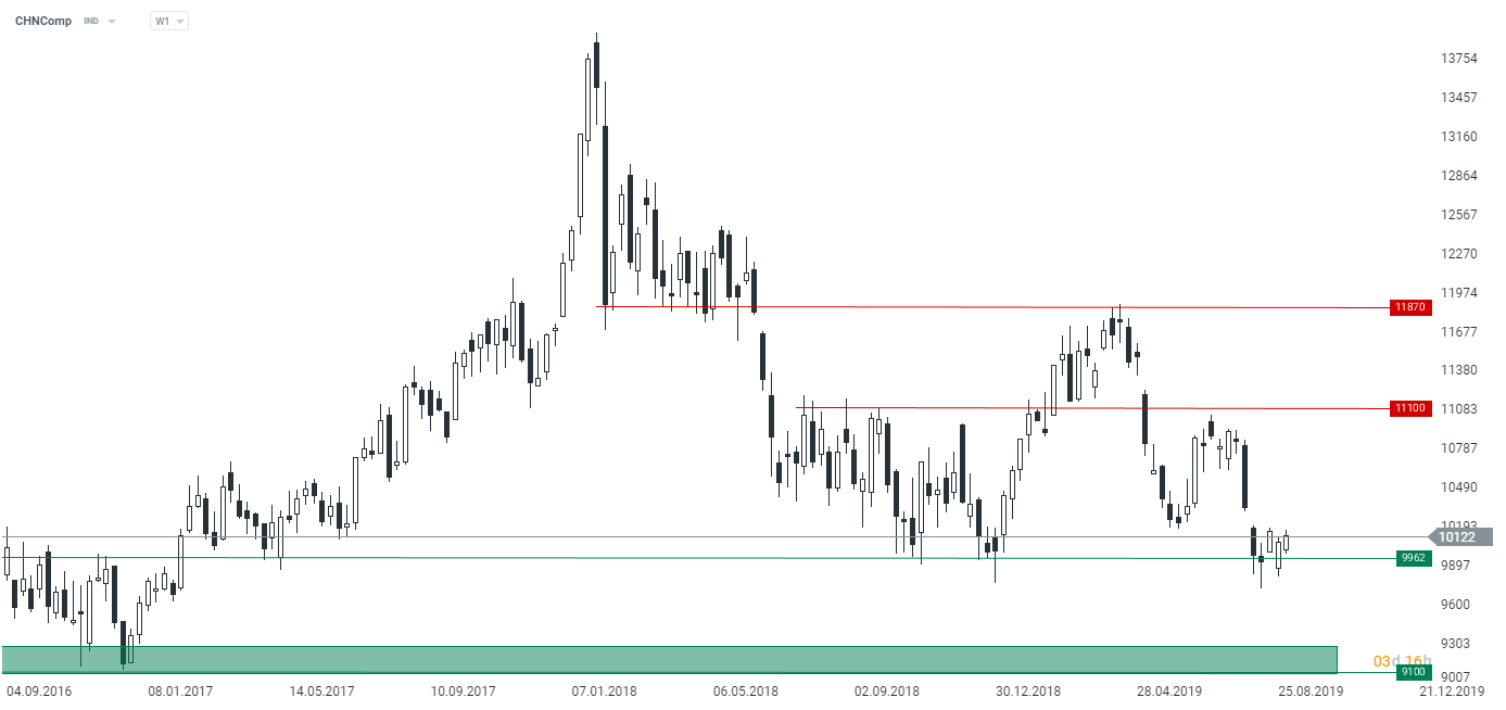L'indice CHNComp tente de rebondir sur son support important autour de 9960 points. Source: xStation5