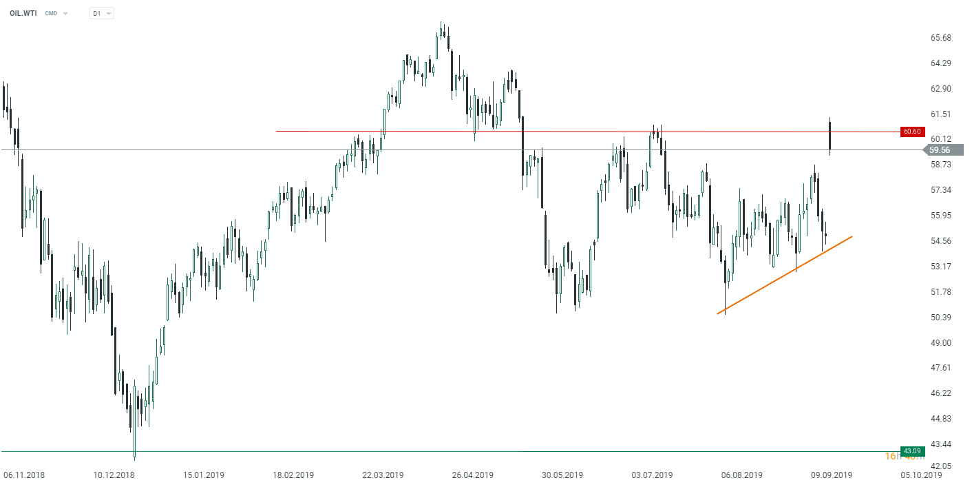Les prix du pétrole WTI ont bondi à l'ouverture, mais ont depuis réussi à effacer un peu de ce mouvement. Source: xStation5