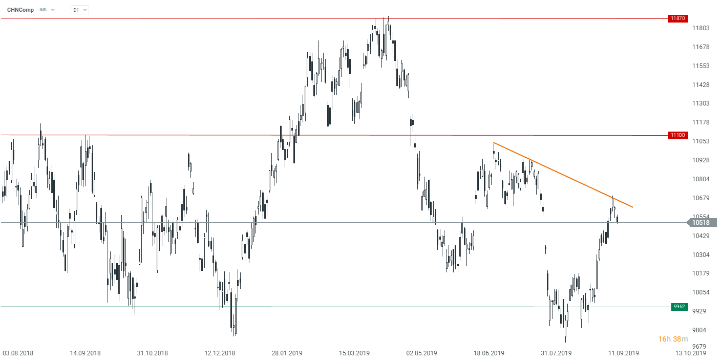 Hang Seng semble prêt à continuer à chuter dans les prochains jours après que le prix ne soit pas parvenu à franchir la résistance locale. Source: xStation5