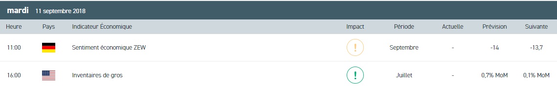 - L’indice ZEW de confiance des investisseurs du mois de septembre en Allemagne et en zone euro
