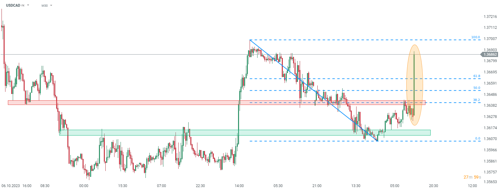En regardant le graphique de l'USDCAD à 30 minutes d'intervalle, nous pouvons voir que la paire a grimpé après la publication des données. Cependant, en dehors du rapport d'inflation négatif pour le CAD, le mouvement sur la paire est soutenu par des données solides sur les ventes au détail américaines qui ont été publiées simultanément.