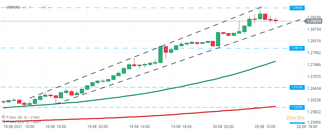 L'USDCAD a réagi relativement peu aux données publiées aujourd'hui. La paire de devises la plus populaire a continué à s'échanger autour du niveau de 1,2900. Source : xStation5