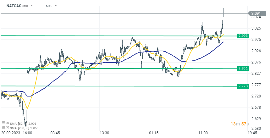 L'Administration américaine de l'information sur l'énergie (EIA) a publié aujourd'hui à 16h30 un rapport hebdomadaire sur les stocks de gaz naturel aux États-Unis. Le marché anticipait une augmentation de 97 milliards de pieds cubes des stocks, légèrement supérieure aux 90 milliards de pieds cubes signalés il y a une semaine. Cependant, le rapport réel a été bien inférieur aux attentes avec une augmentation de seulement 86 milliards de pieds cubes. En réaction immédiate, le NATGAS a augmenté d'environ 2,5%.