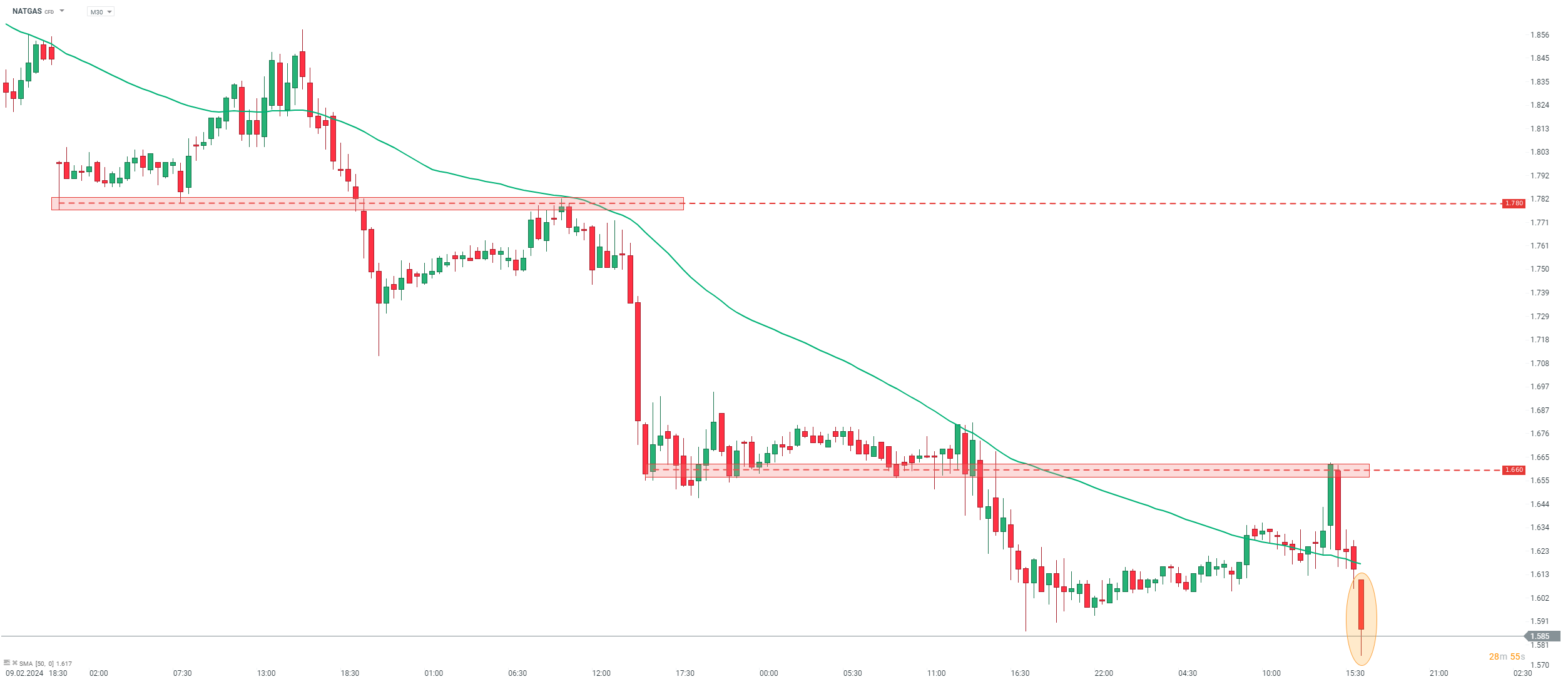 Cependant, le rapport actuel montre une baisse de seulement 49 milliards de pieds cubes. Les prix du gaz naturel aux États-Unis (NATGAS) ont baissé de manière impulsive et ont atteint un nouveau plus bas quotidien en dessous de 1,58 $ par MMBTu.
