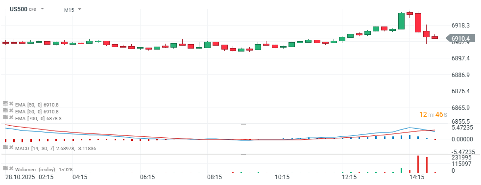 L'indice US500 n'a pratiquement pas réagi aux données macroéconomiques américaines meilleures que prévu. Les anticipations moyennes des consommateurs en matière d'inflation sur 12 mois sont restées quelque peu élevées, passant de 5,8 % en septembre à 5,9 % en octobre.