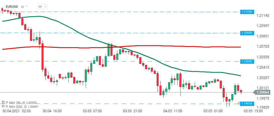 La paire EURUSD a connu une réaction relativement faible aux données publiées aujourd'hui. La paire de devises la plus populaire a continué à s'échanger autour du niveau de 1,20. Source : xStation5