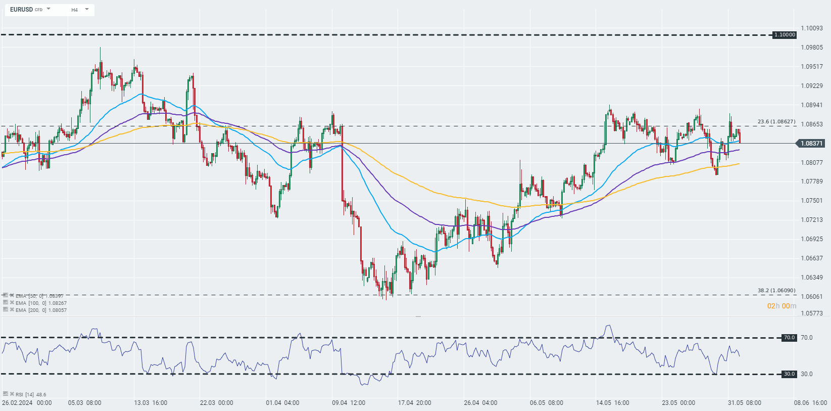L'euro a légèrement perdu du terrain face au dollar après la publication des données PMI pour mai. Globalement, les données sont presque conformes aux attentes, mais on observe néanmoins une légère tendance vers un élan économique moins favorable.