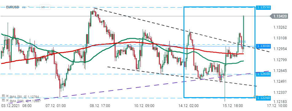 La paire EURUSD a rebondi sur le support de 1,1300 après la décision de la BCE et se dirige vers le prochain niveau de résistance à 1,1355. Source:xStation5