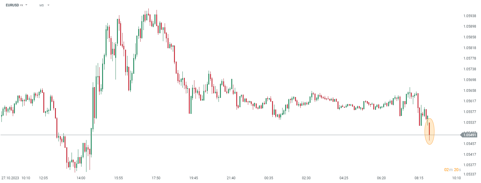 L'EURUSD a chuté à un nouveau plus bas journalier suite à l'échec des données de l'IPC espagnol. Source : xStation5