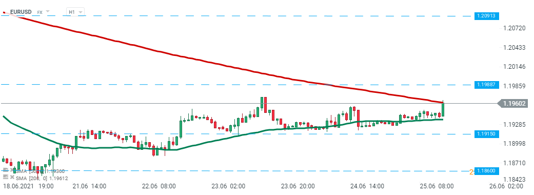 La paire EURUSD a augmenté après la publication des données d'aujourd'hui et se dirige vers le niveau de résistance de 1,1988. Source : xStation5