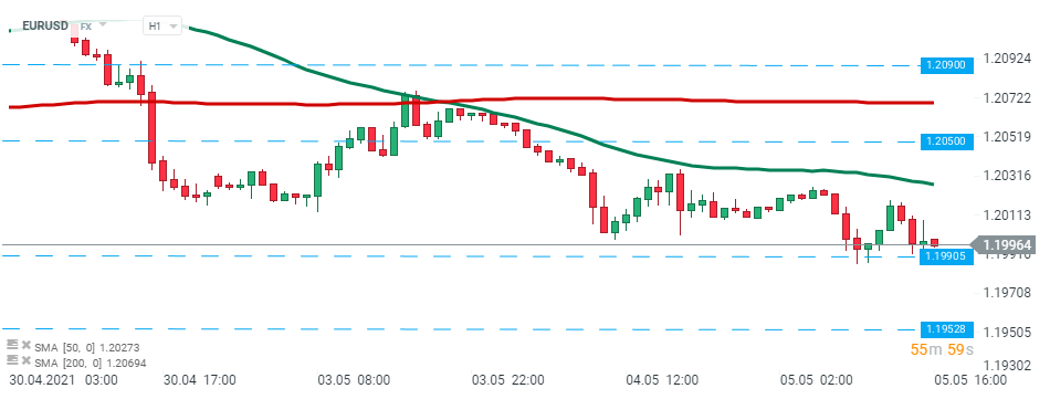 La paire EURUSD a relativement peu réagi aux données publiées aujourd'hui. La paire de devises la plus populaire est passée légèrement sous le niveau de 1,20. Source : xStation5