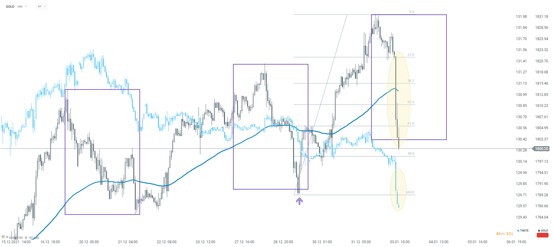 Ces dernières heures, nous pouvons observer de solides baisses sur l'or, mais aussi sur les autres métaux précieux. Ceci est lié au mouvement haussier des rendements obligataires américains, qui sont passés de 1,5% à 1,59% au cours de la séance d'aujourd'hui (dans le même temps, les prix de ces obligations ont baissé). La hausse des rendements des obligations du Trésor à 10 ans s'accompagne également d'un renforcement du dollar, qui gagne aujourd'hui plus de 0,6 % par rapport à l'AUD, au CAD et au NZD et plus de 0,8 % par rapport à l'EUR, au GBP et au CHF.