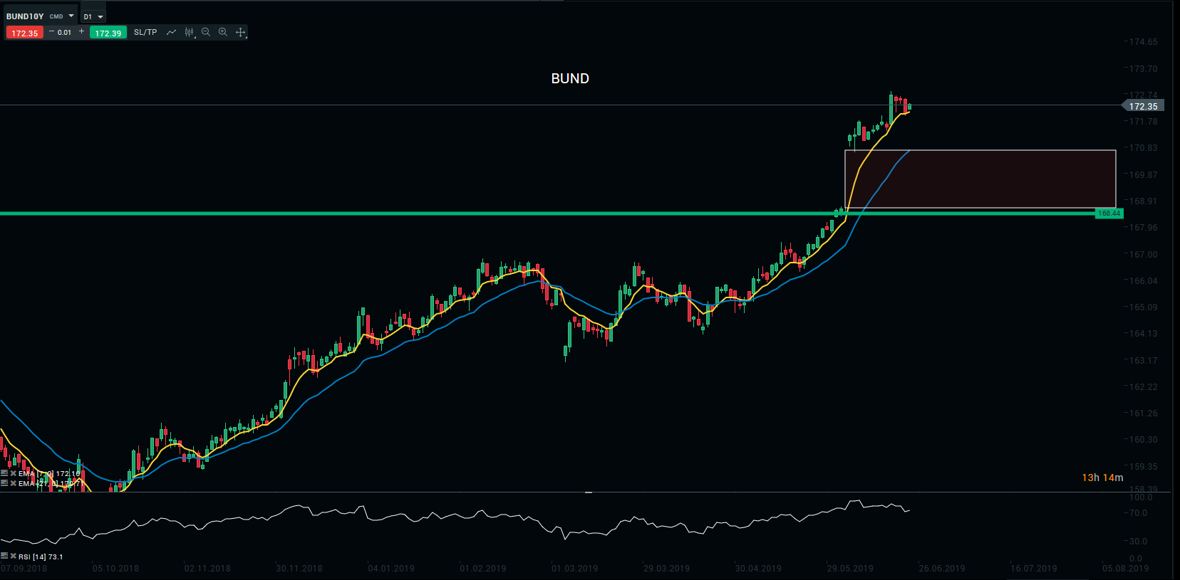 Représentation technique du Bund10Y, en D1