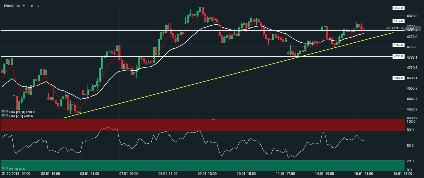 Représentation technique du CAC 40 (FRA40) en unité de temps 1 heure (H1)
