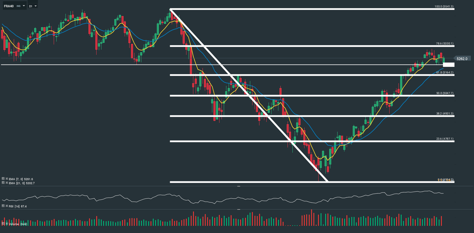 Sur le plan technique, en horizon temporel journalier (D1), l’indice parisien évolue à la hausse. Ces derniers jours, les cours ont rebondi à plusieurs reprises sur le niveau des 5 240 points. Après avoir longtemps été une zone de résistance, il semble que ce niveau joue dorénavant un rôle de support technique dans l’esprit du marché. Les cours sont soutenus par la moyenne mobile à 21 périodes. Considérant qu’un vote en faveur d’un « Hard Brexit» est peu probable, nous avons un biais positif sur l’indice.