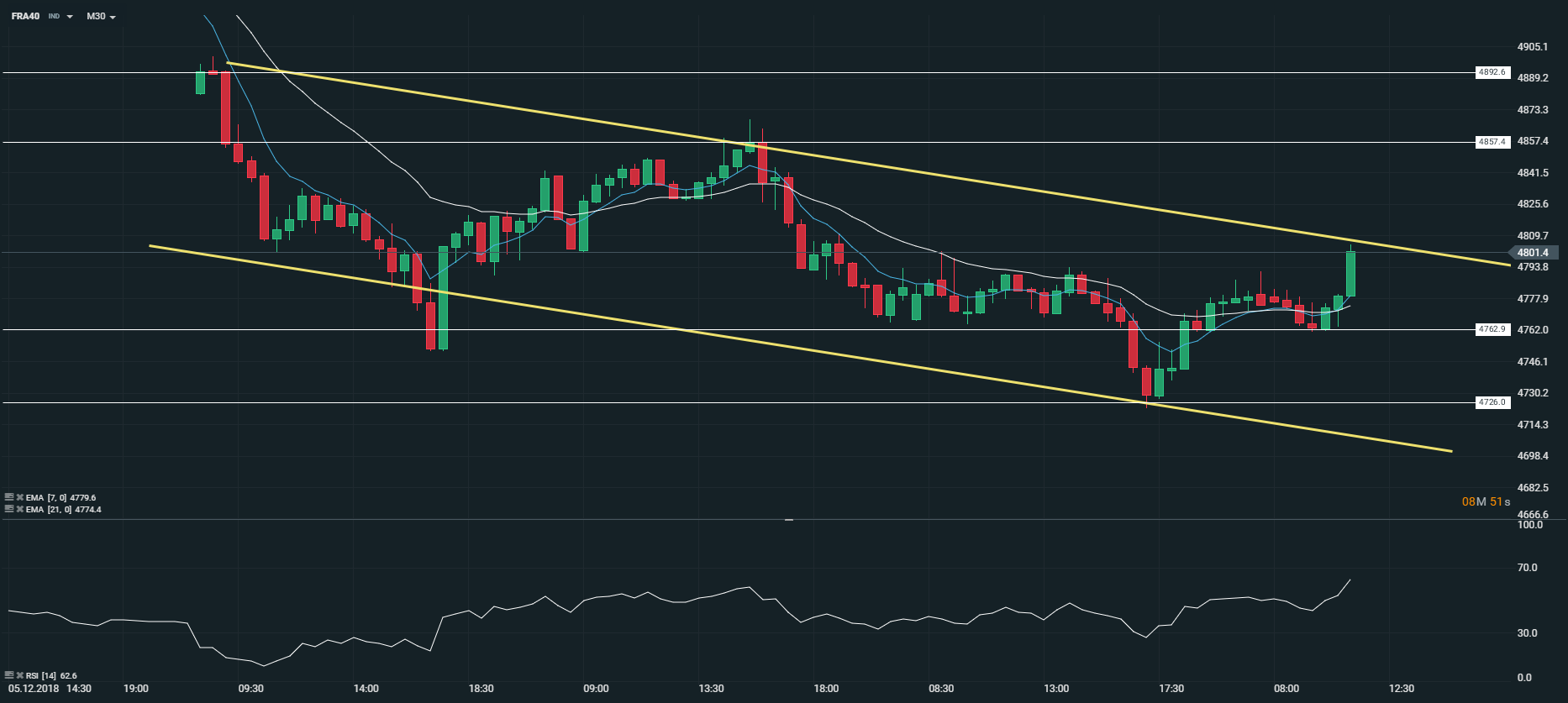 Représentation technique du CAC 40 (FRA40), en unité de temps 30 minutes (M30)