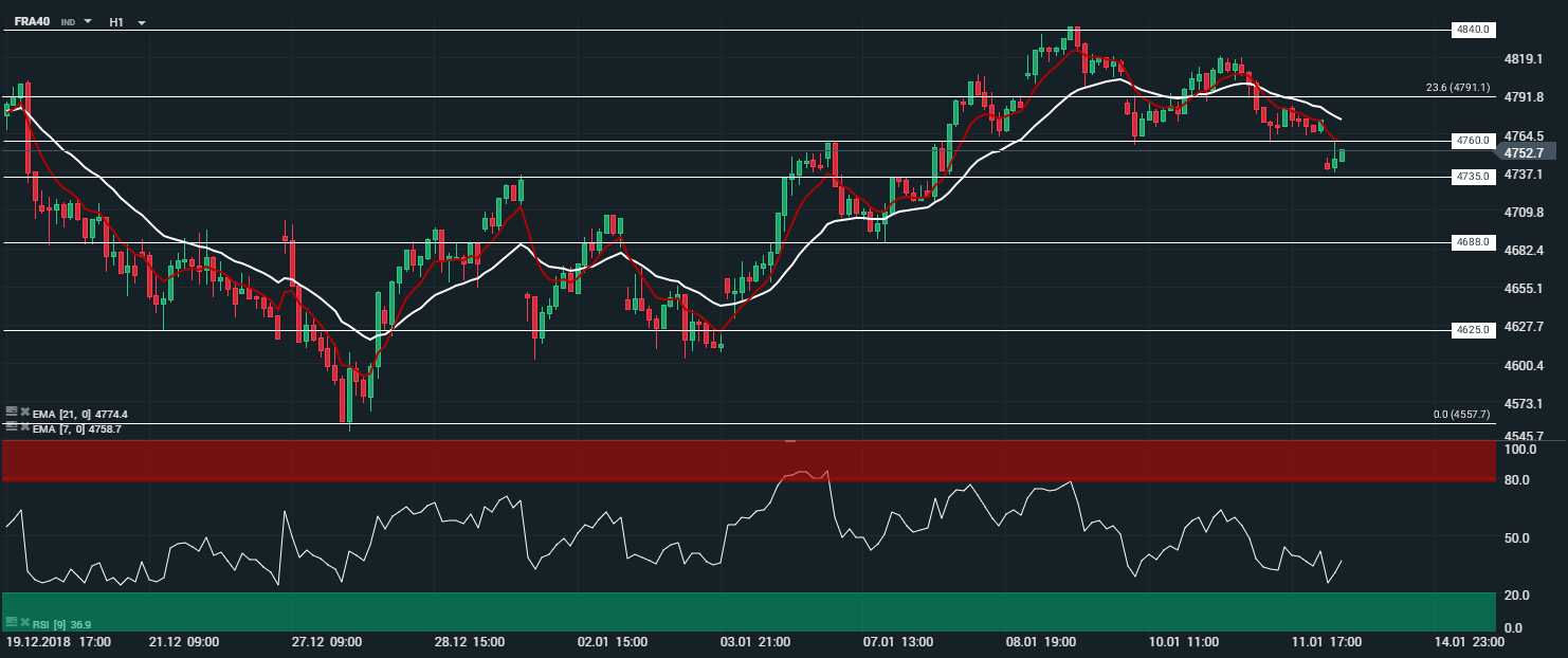 Représentation technique de l’indice CAC 40 (FRA40), en unité de temps1 heure (H1)