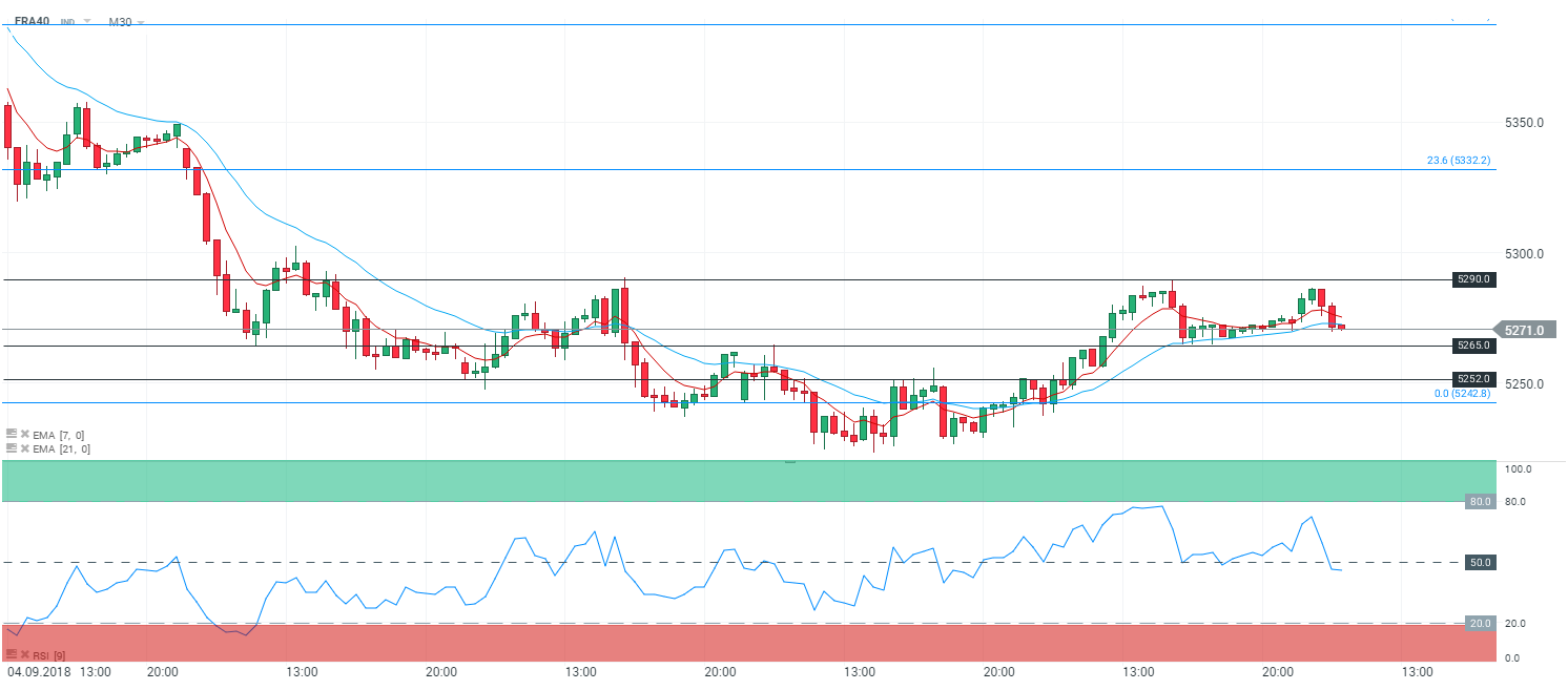 Représentation graphique du CAC40 (FRA40), en 30 minutes (M30)