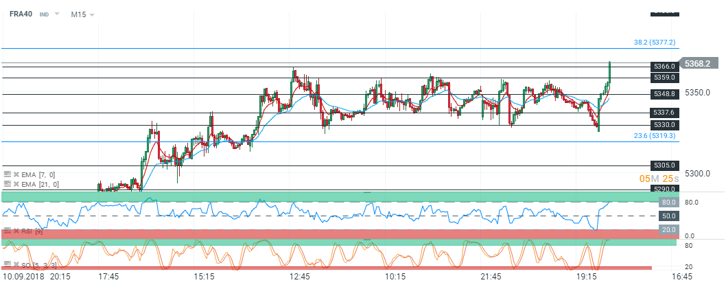 Représentation technique du CAC40 (FRA40), en 15 minutes
