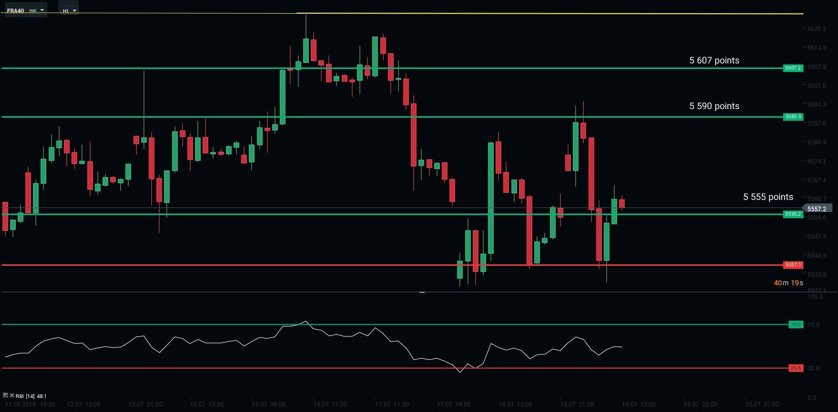 Représentation technique de l’indice CAC40, en H1
