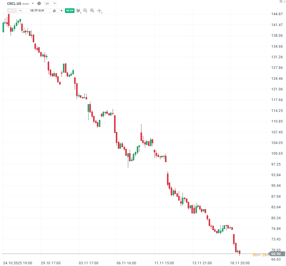 Depuis ce sommet, le cours ne fait que corriger. Aujourd’hui, le titre recule de 10 %, sur fond de concurrence accrue sur le marché des stablecoins et de baisse des taux, deux éléments qui pèsent sur sa rentabilité projetée.