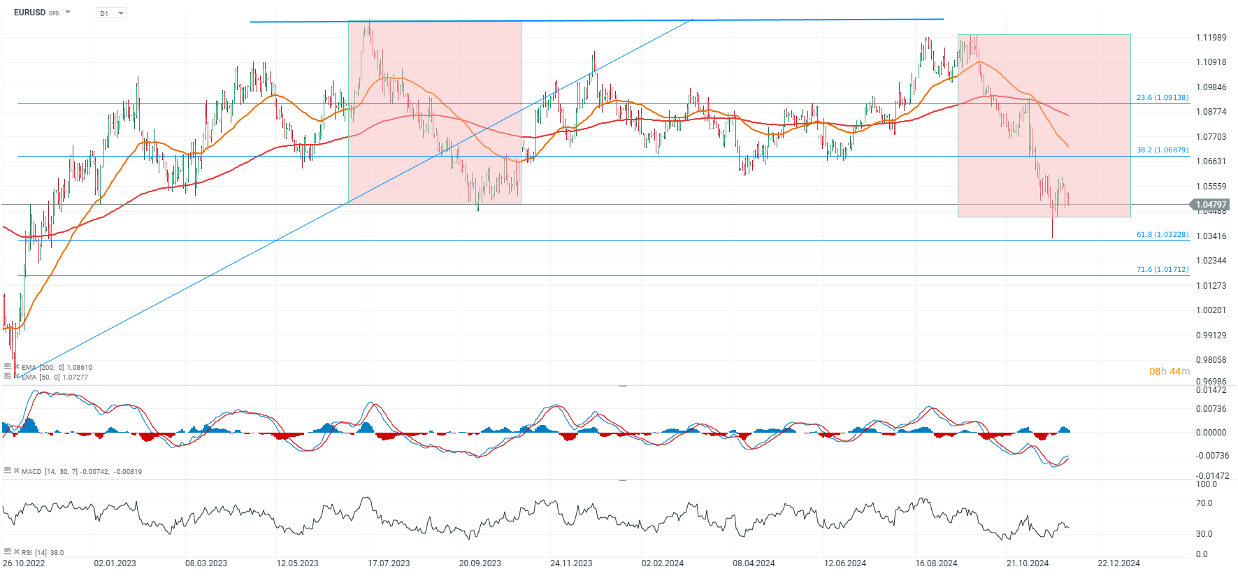 L'EURUSD perd 0,3 %, sous pression également en raison de l’instabilité politique en France.