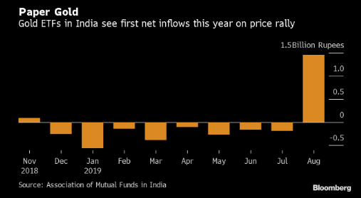 - À la fin du mois d’août, les ETF indiens avaient conservé jusqu’à 58 milliards d’INR (Roupie indienne) en or; rien qu’au mois d’août, nous avons enregistré une hausse de 1,5 milliard d’INR.