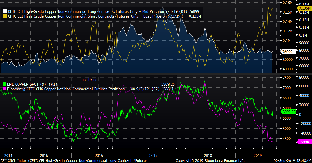 Le cuivre étant encore fortement survendu, les prix pourraient en théorie rebondir dans un avenir proche. Source: Bloomberg